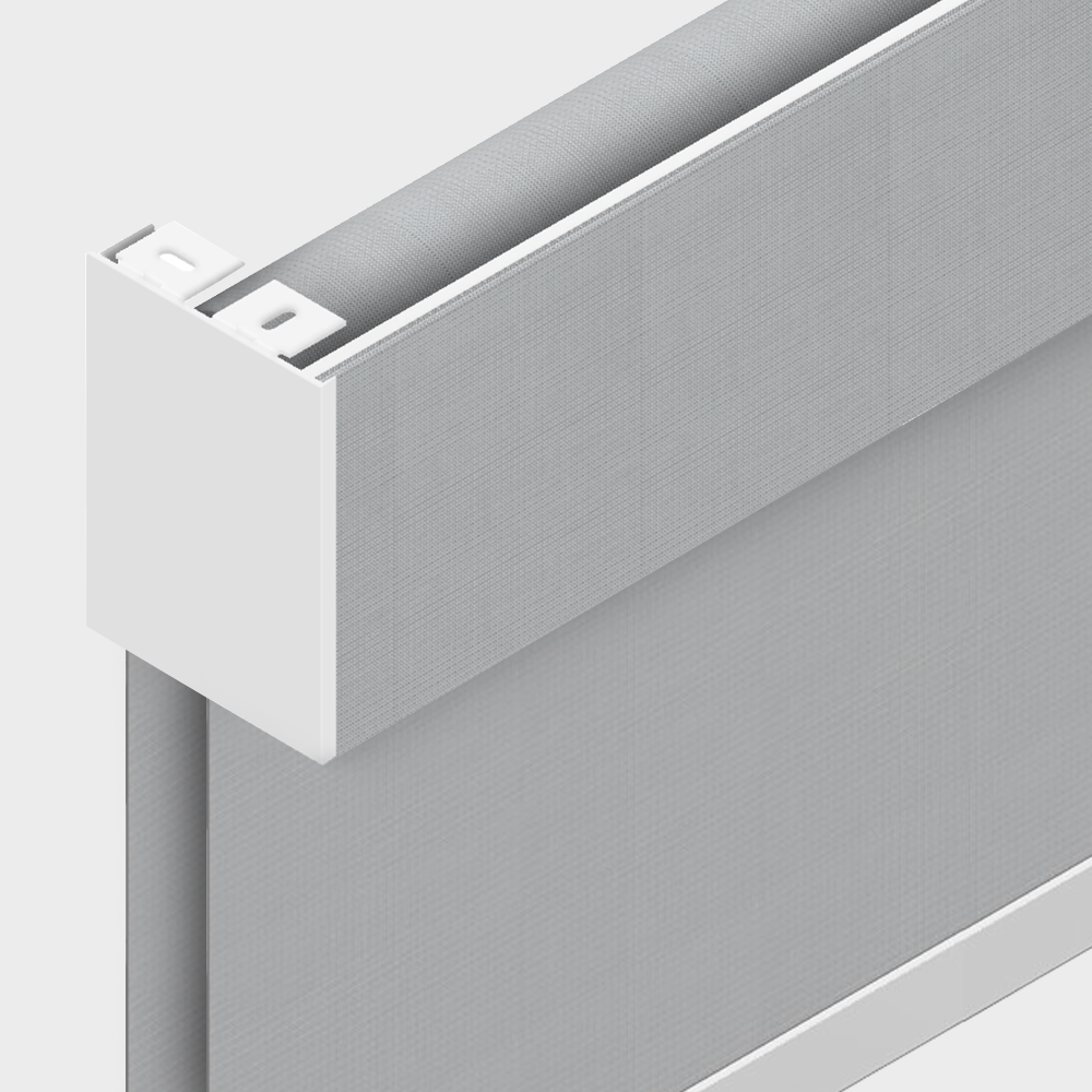 The fascia is inverted to allow both the front and rear shades to be set up in reverse roll configuration. This is ideal for avoiding obstacles at the rear of the window jamb.